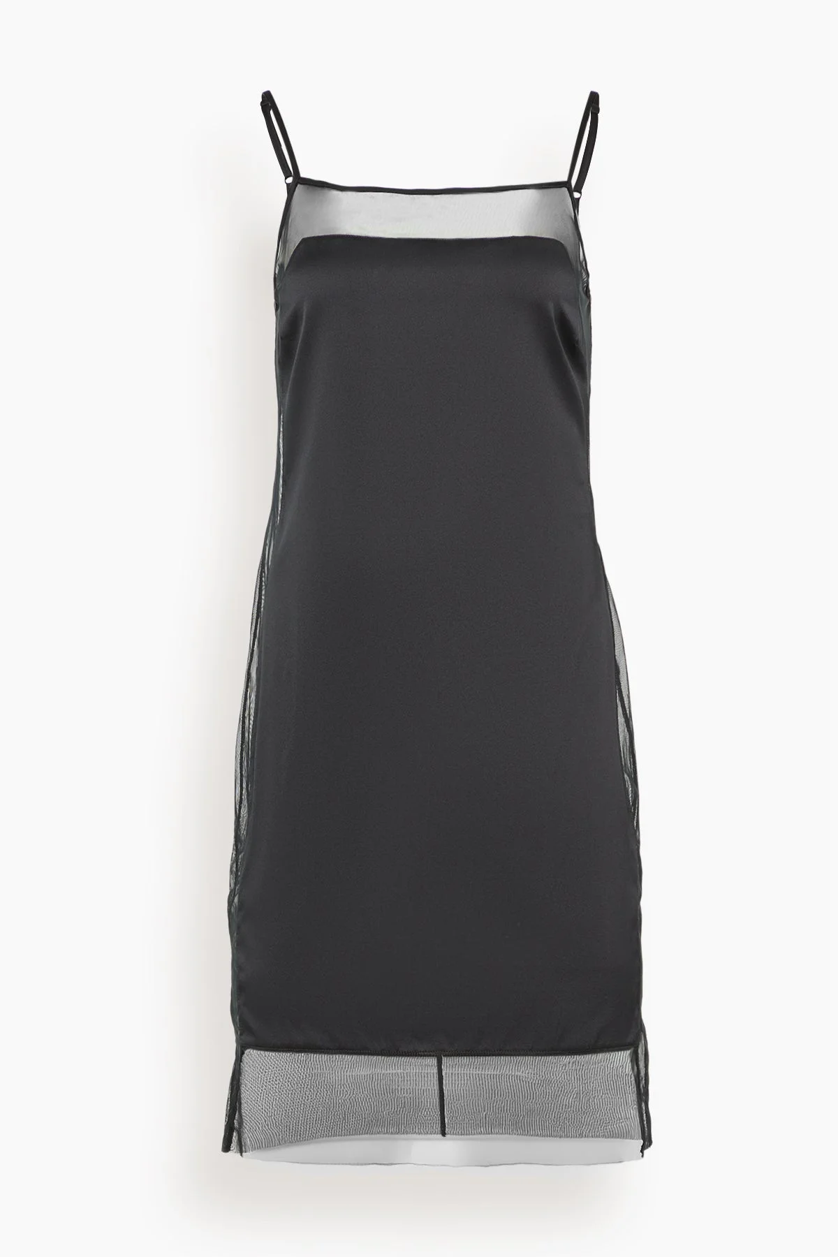 The Kiki de Montparnasse Maxim Mini Slip Dress is acrafted in Italy from stretch silk charmeuse and Italian stretch tulle. This slip dress plays with transparency and contour. Sheer tulle panels trace the silhouette, creating a fluid, sculpted effect that skims the knee. Effortlessly sensual and refined, it’s a modern statement in texture and movement. FIT DETAILS - Italian Stretch Tulle - Silk Stretch Charmeuse - Self: 84% Nylon, 16% Elastane - Combo: 90% Silk, 10% Spandex - Made in Italy - Dry Clean Only