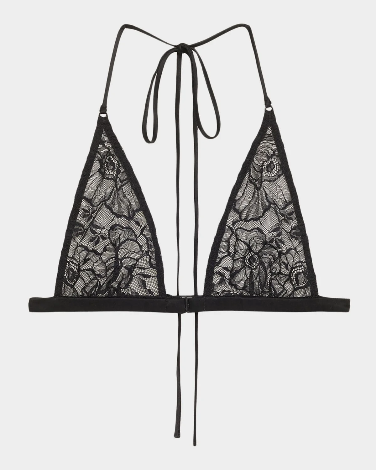 This Kiki De Montparnasse "Michelia" soft bra is crafted in intricate sheer floral lace Wireless triangle cups Adjustable straps self-tie behind the neck Hook back closure Nylon/polyamide Dry clean Imported