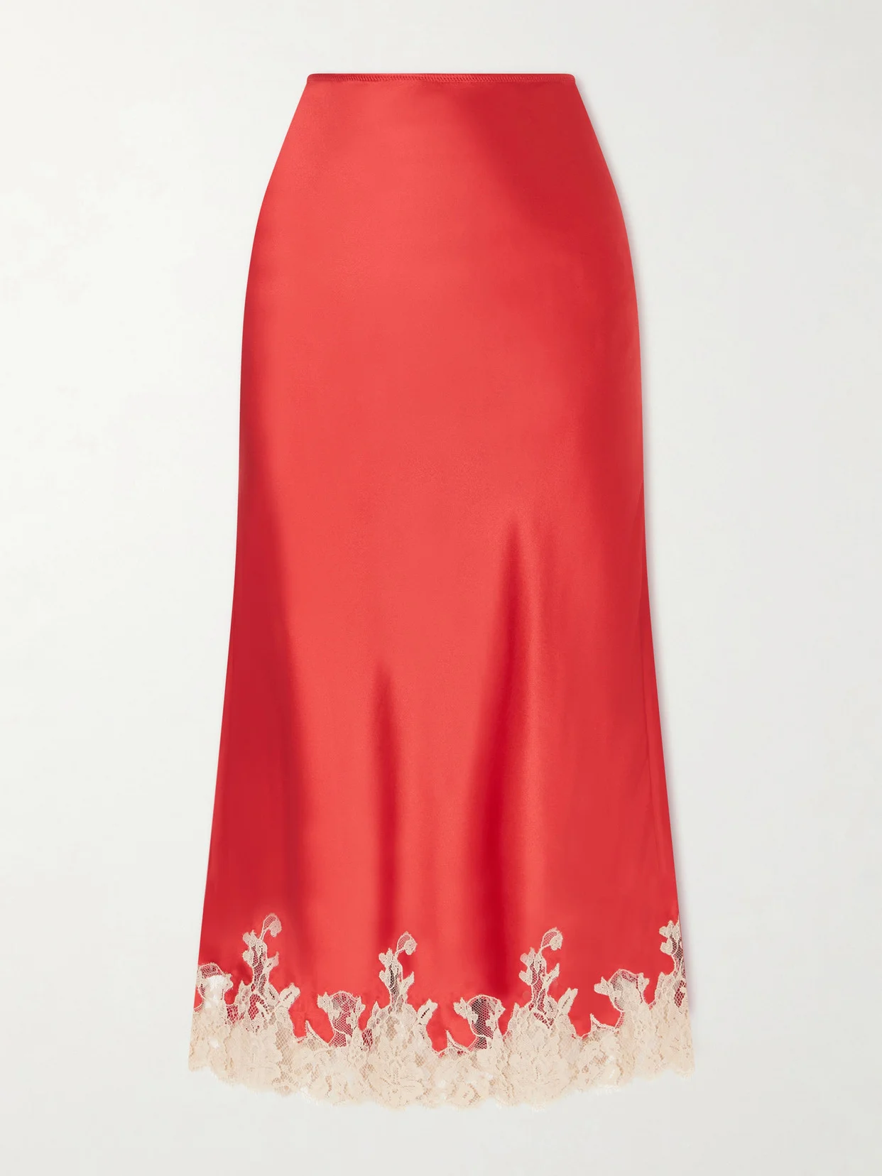 Orchid Lace-trimmed Silk-satin Midi Skirt