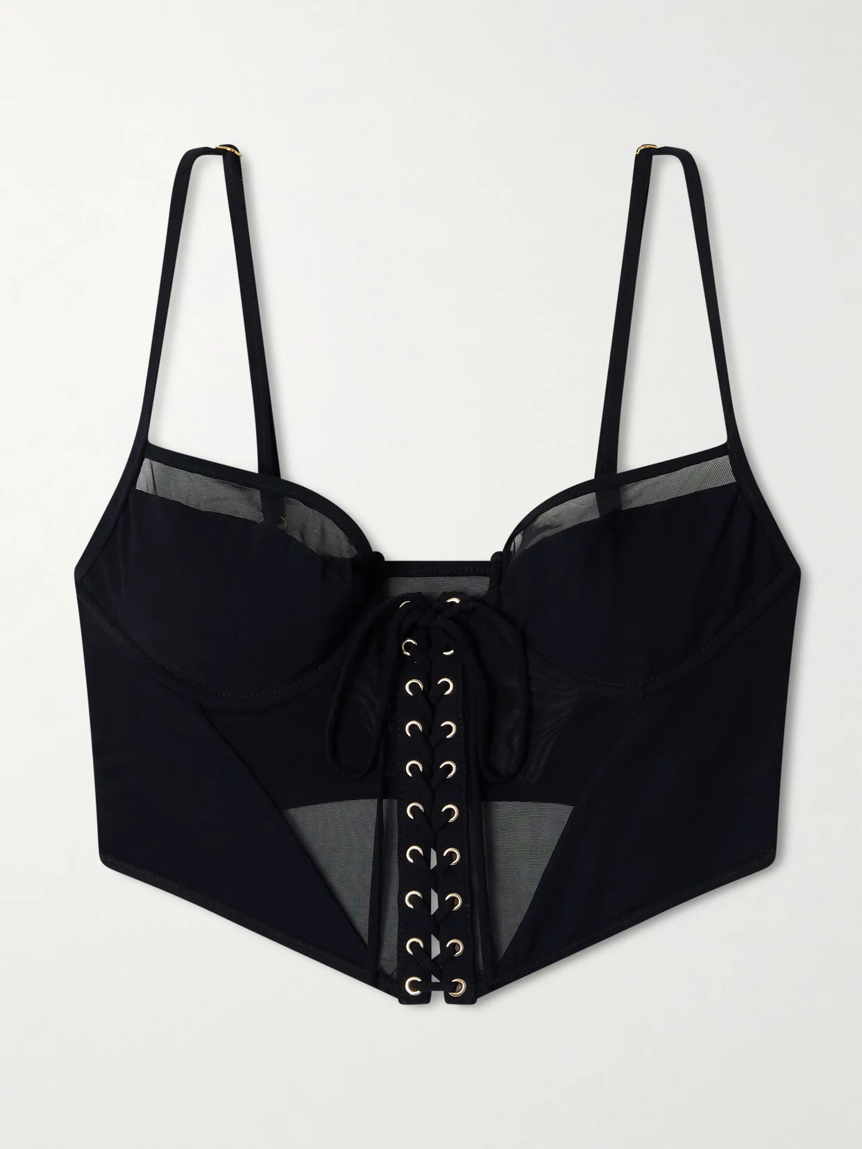Peep Tulle-trimmed Corset Bikini Top