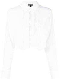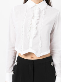 ruffled tuxedo shirt white cotton ruffled detailing classic collar front button fastening long sleeves buttoned cuffs cropped Imported Composition Cotton 100% SIZE & FIT Model measurements Height 5 ft 10 in(1.78 m) Bust/Chest 33.07 in(84 cm) Hips 33.85 in(86 cm) Waist 25.19 in(64 cm) FittingInformation This piece fits true to size. We recommend you get your regular size Cut for a loose fit Made with a lightweight fabric Washing instructions Dry Clean Only