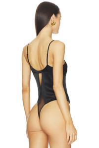 - 90% silk 10% elastane - Made in China - Dry clean only - Hidden side zip and eyelet closure - Back hook closure - Snap button gusset closure - Adjustable shoulder straps - Revolve Style No. KIDE-WI153 - Manufacturer Style No. F251BD036