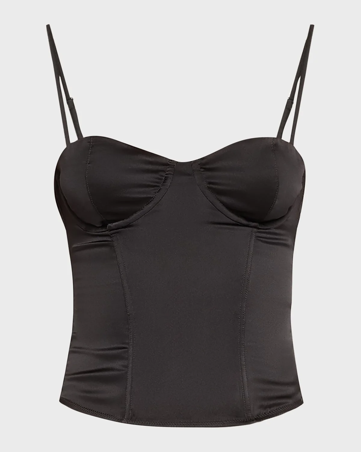 Kiki De Montparnasse "Tous Les Jours" bustier in silk stretch charmeuse Sweetheart neckline Sleeveless Adjustable straps Slim fit Hook-and-eye back closure Shaping Level: Medium control Silk/spandex Imported Model is 5'10"/177cm.