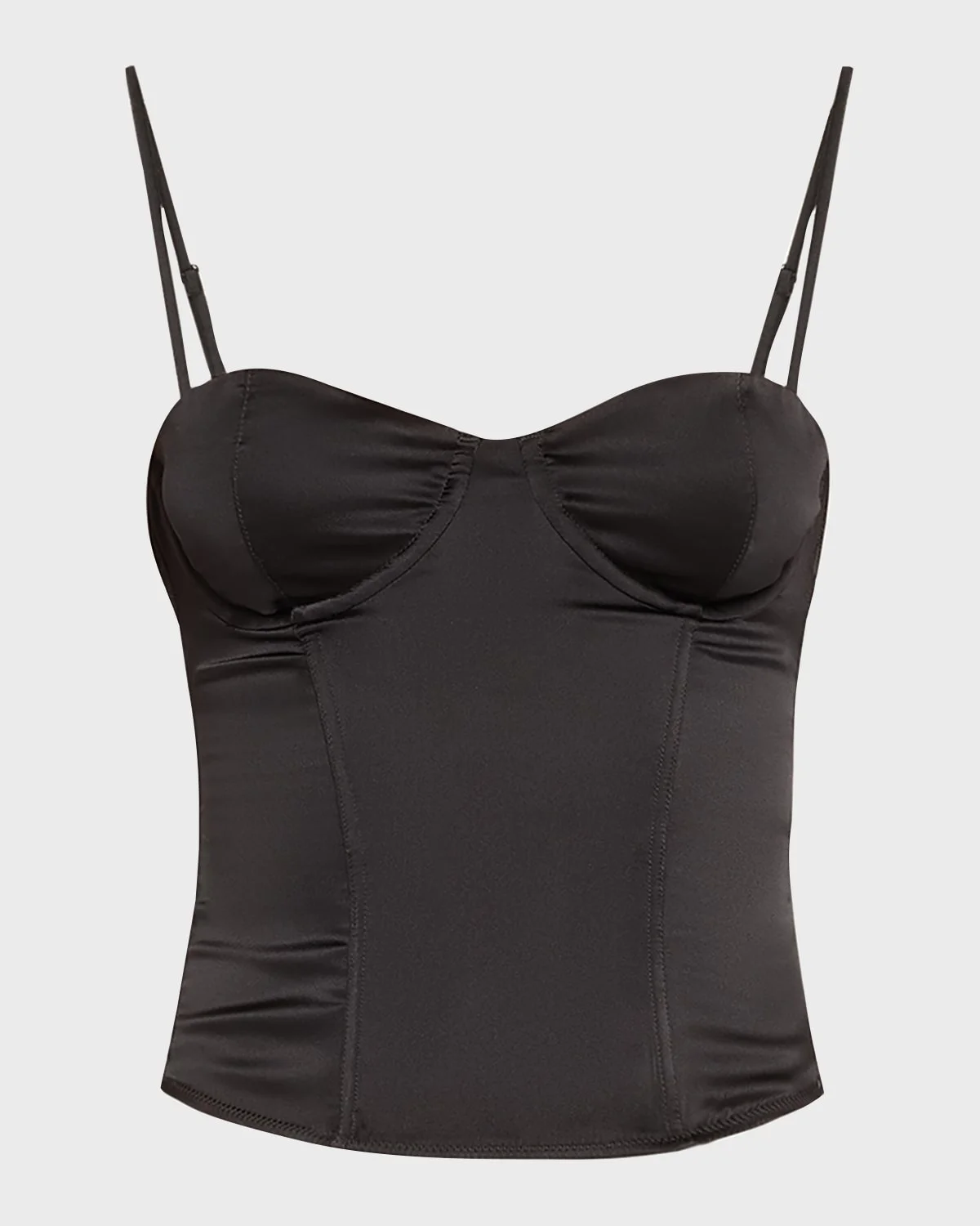 Kiki De Montparnasse "Tous Les Jours" bustier in silk stretch charmeuse Sweetheart neckline Sleeveless Adjustable straps Slim fit Hookandeye back closure Shaping Level: Medium control Silk/spandex Imported