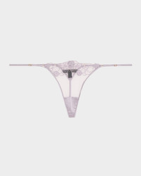 Violet Floral-Embroidered Tulle Thong