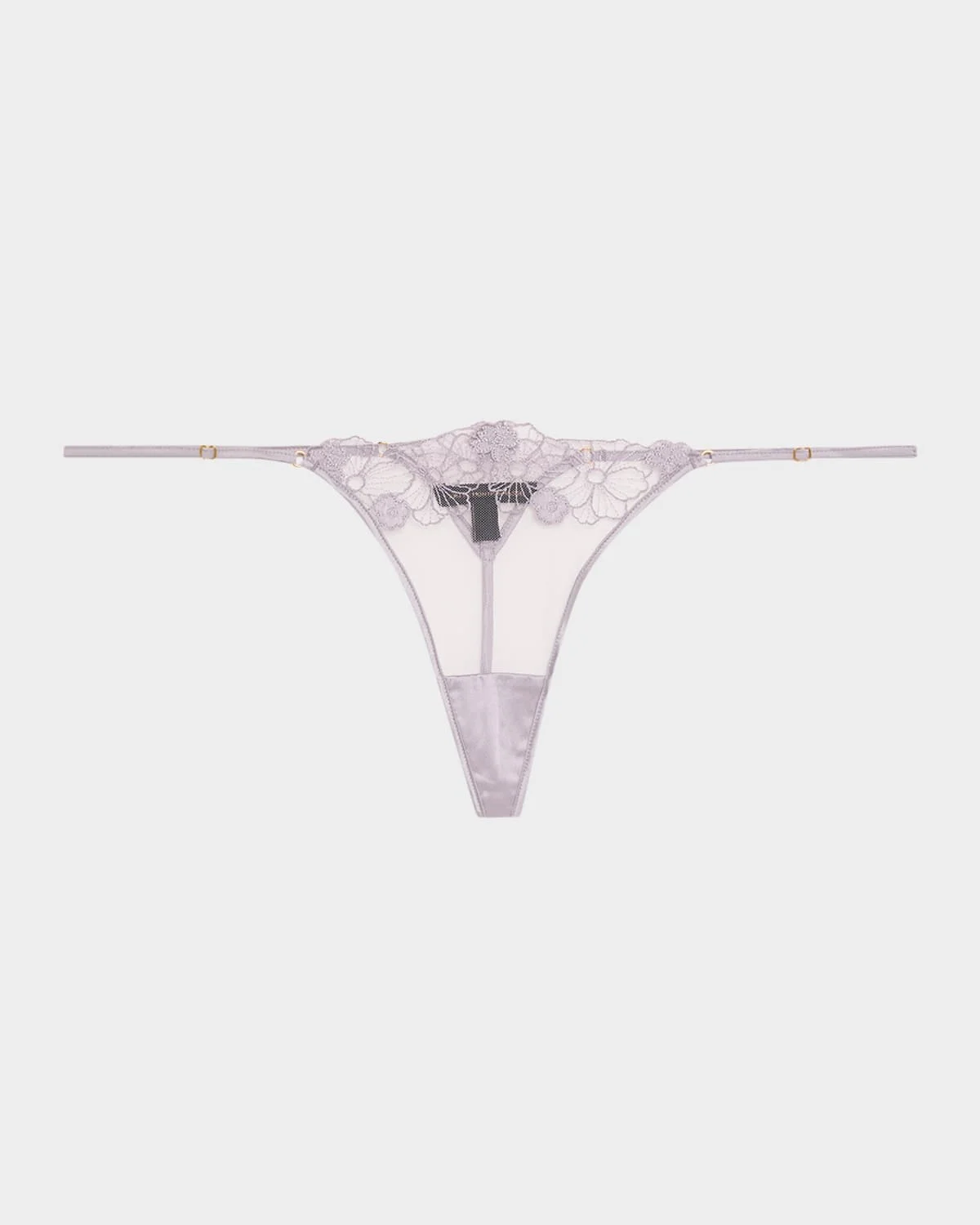 Kiki De Montparnasse "Violet" tulle thong with floral embroidery Lowrise sits low on the hips Adjustable side straps Minimal seat coverage Nylon/polyamide/polyester Made in the USA