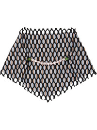 Cotton poplin scarf-style necklace in tan and blue. · Stripes and raw edges throughout · Mesh overlay in black · Hand-blown glass faux-pearls at face · Satin lining · Logo plaque at adjustable lobster-clasp fastening · H12.5" x W44.5" Supplier color: Palladium/Tiger stripe Textile, glass, metal. Made in Italy 252985F023000