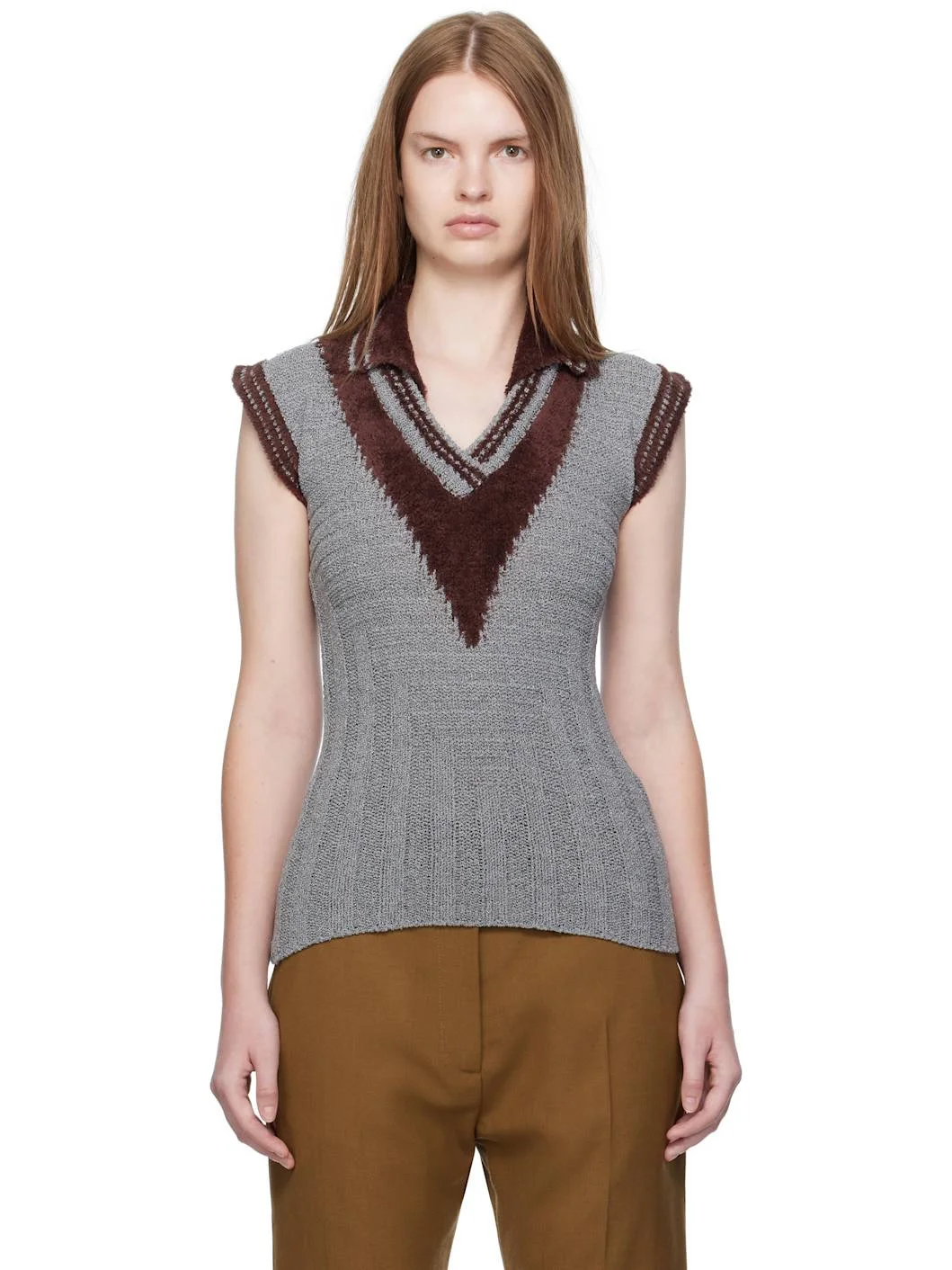 Rib-knit silk and cotton-blend fleece polo. Striped spread collar, V-neck, and armscyes. Supplier color: Speckled fossil grey Body 1: 73% cotton, 27% polyamide. Body 2: 100% silk. Made in Bulgaria 252985F100001