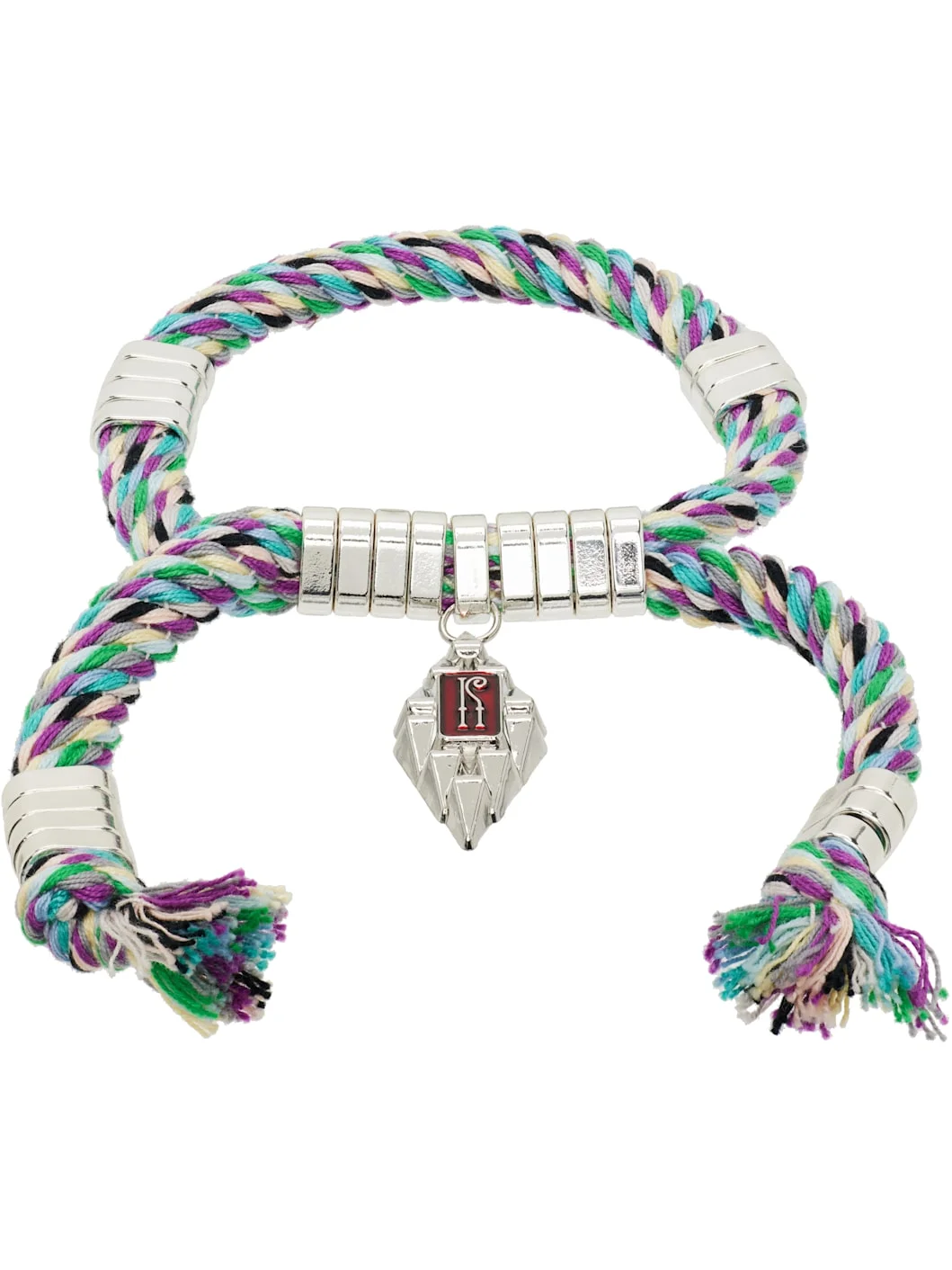 Cord bracelet in multicolor. · Logo charm at face · Pull-through fastening · Rhodium-plated brass and stainless steel hardware · D7" Supplier color: Multicolor sky blue Rhodium-plated brass, stainless steel, textile. Made in United Kingdom 252985F020000