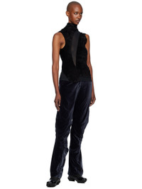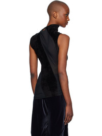 Stretch viscose-blend velour and nylon-and silk-blend georgette tank top. · Paneled construction · Mock neck · Asymmetrical hem Supplier color: Ebony black/Foggy black Body 1: 71% viscose, 26% polyamide, 3% elastane. Body 2: 48% polyamide, 36% silk, 16% lyocell. Made in Bulgaria 242985F111008