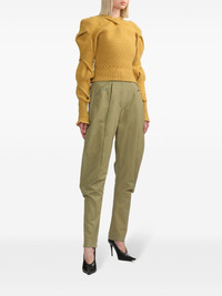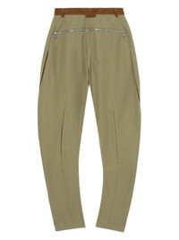 pleat-detailing tapered trousers Highlights - Olive green/brown - Cotton blend - Corduroy detail - Front button fastening - Belt loops - Two front jetted pockets - Rear zip-fastening pocket - Tapered leg Imported Composition Cotton 57%, Polyamide 43%