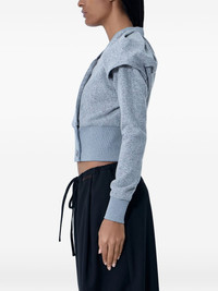 ribbed-waistband cardigan Highlights - Grey - Ribbed waistband - Button fastening - Long sleeves - Structured shoulders - Cropped fit Imported Composition Wool 50%, Technical Fabric 50% Washing instructions Dry Clean Only