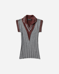 Kiko Kostadinov Quimby Sleeveless Polo Speckled Fossil Grey The Quimby sleeveless polo is made from a soft feel mulberry silk in a 4 x 4 mid gauge rib construction. Rib detailing creates a corrugated pattern throughout. The melange silk yarn is contrasted by a soft, plush fleece effect intarsia on the chest and collar. The fleece effect yarn is composed of a cotton blend. The ribbed v neckline is coupled with a polo style collar. - 100% Silk - Tight Fit - Fleece Effect Intarsia at Chest and Collar - Ribbed Details - Style Code: KKWAW25KN12 131