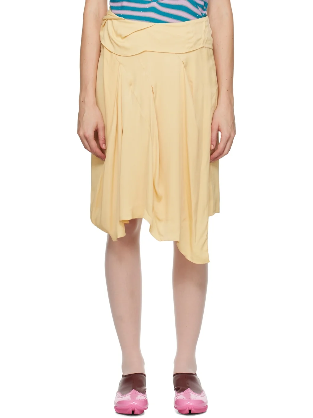 Acetate- and silk-blend satin midi skirt. Draping throughout. · Layered and asymmetric construction · Zip closure at side seam Supplier color: Pale yellow 70% acetate, 30% silk. Made in Bulgaria 242985F092011