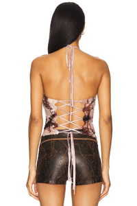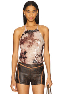 - 100% nylon - Machine wash cold - Halterneck tie closure and back lace-up tie closure - Midweight sequined fabric with open back - Item not sold as set - Revolve Style No. KIMR-WS65 - Manufacturer Style No. KS2025SS15