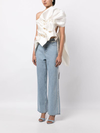 asymmetric gathered pearl-detail blouse