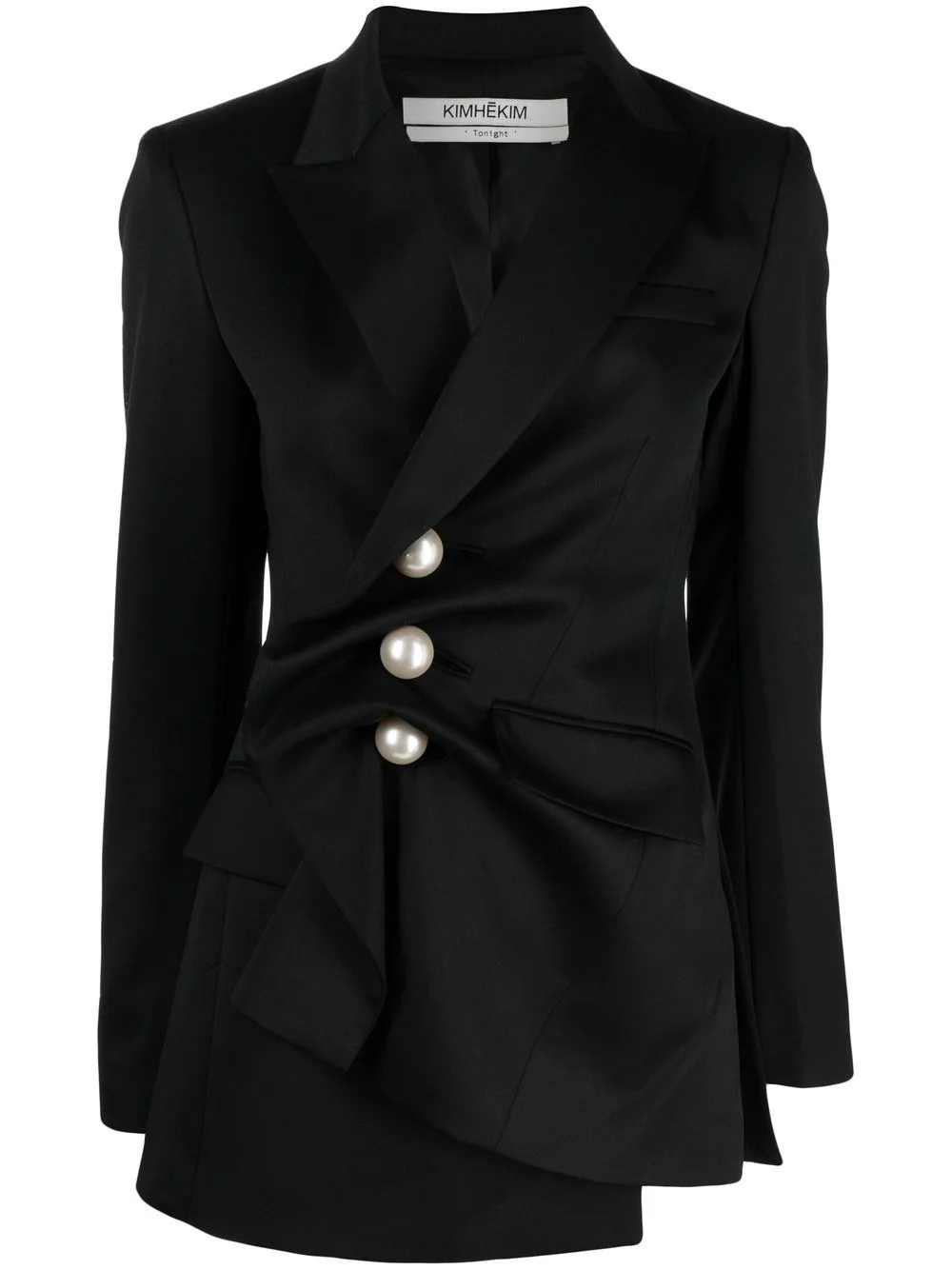 asymmetric single-breasted blazer black wool blend asymmetric design faux-pearl buttons gathered detailing peak lapels front button fastening chest welt pocket two side flap pockets side slits long sleeves split cuffs central rear vent Imported Composition Polyester 50%, Wool 50% SIZE & FIT Measurement LENGTH 29.13 in(74 cm) WAIST 31.49 in(80 cm) BUST 34.64 in(88 cm) Shoulder Width 15.35 in(39 cm) Washing instructions Dry Clean Only