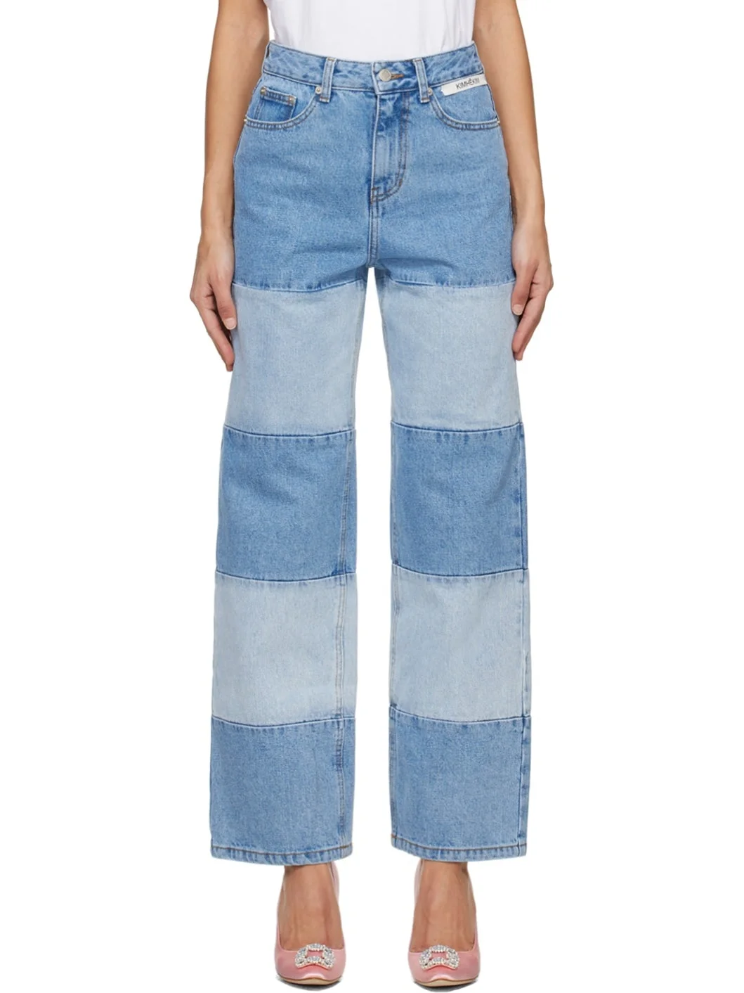 Straight-leg non-stretch denim jeans. · Paneled construction · Belt loops · Five-pocket styling · Zip-fly · Logo patch at front and back waist · Logo-engraved silver-tone hardware Supplier color: Sky blue 100% cotton. Made in South Korea 241609F069008