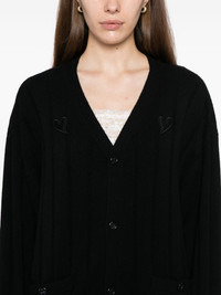 heart-patch v-neck cardigan Highlights - Black - Front button fastening - Two front button-fastening jetted pockets Imported Composition Merino 70%, Cashmere 30% SIZE & FIT Model measurements Height 5 ft 10 in(1.77 m) Bust/Chest 32.67 in(83 cm) Hips 37 in(94 cm) Waist 25.98 in(66 cm) FittingInformation Designed to be unstructured, offering a loose fit throughout The ribbed hem offers a close, comfortable fit Made with a midweight knit, this piece offers some stretch Washing instructions Dry Clean Only