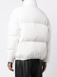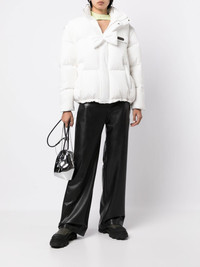 logo-patch puffer jacket Highlights - White - Goose down - Padded design - Logo patch at the chest - High neck - Bow detailing - Concealed front fastening - Long sleeves - Two side slit pockets - Detachable sleeves - Elasticated hem Imported Composition Lining: Polyester 100% Filling: Goose Down 100% SIZE & FIT Model measurements Height 5 ft 10 in(1.77 m) Bust/Chest 31.49 in(80 cm) Hips 35.43 in(90 cm) Waist 25.19 in(64 cm) FittingInformation This piece fits true to size. We recommend you get your regular size Cut for a loose fit Made with a mid-weight non-stretch fabric