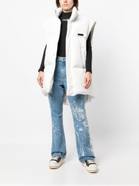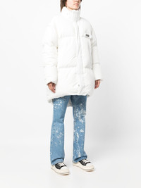 logo-plaque puffer jacket white padded design logo plaque high neck concealed front zip fastening concealed hood two side welt pockets long sleeves high-low hem above-knee length Imported Composition Polyester 100% SIZE & FIT Model measurements Height 5 ft 9 in(1.76 m) Bust/Chest 29.13 in(74 cm) Hips 33.07 in(84 cm) Waist 22.83 in(58 cm) FittingInformation This piece fits true to size. We recommend you get your regular size Cut for a loose fit Made with a mid-weight fabric Washing instructions Dry Clean Only