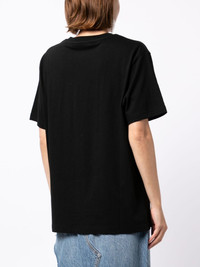 logo-print T-shirt Highlights - Black - Cotton - Logo print to the front - Round neck - Short sleeves - Straight hem Imported Composition Cotton 100% SIZE & FIT Model measurements Height 5 ft 9 in(1.76 m) Bust/Chest 29.13 in(74 cm) Hips 33.07 in(84 cm) Waist 22.83 in(58 cm) Measurement SLEEVE LENGTH 7.87 in(20 cm) Shoulder Width 17.32 in(44 cm) LENGTH 24.8 in(63 cm) BUST 38.58 in(98 cm) FittingInformation Designed for a close fit at the chest and waist with a loose fit at the hip Made from a midweight non-stretch fabric, this piece offers minimal elasticity when worn This piece fits close in all sizes – take your usual size Washing instructions Dry Clean Only