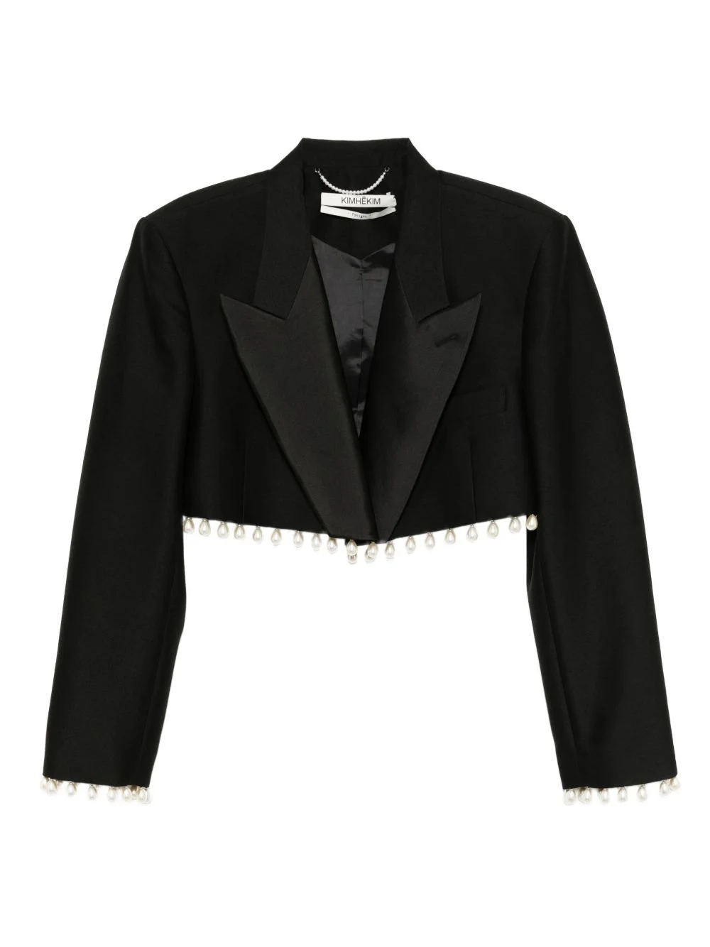 pearl-embellished cropped jacket Highlights - Black - Side welt pocket - V-neck - Buttoned-cuff sleeves Imported Composition Lining: Cupro 50%, Polyester 50% Outer: Wool 85%, Silk 15% Wool 50%, Silk 50% SIZE & FIT Model measurements Height 5 ft 10 in(1.78 m) Bust/Chest 30.31 in(77 cm) Hips 37 in(94 cm) Waist 24.8 in(63 cm) Measurement LENGTH 14.56 in(37 cm) BUST 37 in(94 cm) Shoulder Width 17.71 in(45 cm) FittingInformation Designed for a boxy fit, intended for a loose fit throughout The internal shoulder pads offer a structured shape Made from a midweight non-stretch fabric Washing instructions Dry Clean Only