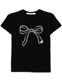pearl-embellished T-shirt Highlights - Black - Crew neck - Bow detailing - Straight hem Imported Composition Cotton 95%, Spandex/Elastane 5%