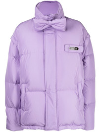 detachable-sleeve puffer jacket lavender purple down-feather filling padded design logo plaque bow detailing stand-up collar concealed hood concealed front zip fastening detachable sleeves two side welt pockets straight hem Imported Composition Body: Polyester 100% Lining: Polyester 100% Filling: Goose Down 90%, Feather 10% Washing instructions Dry Clean Only