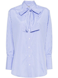 striped pussy-bow shirt Highlights - Light blue/off-white - Vertical stripe print - Pussy-bow collar - Front button fastening - Long sleeves - Buttoned cuffs - Curved hem Imported Composition Polyester 100%