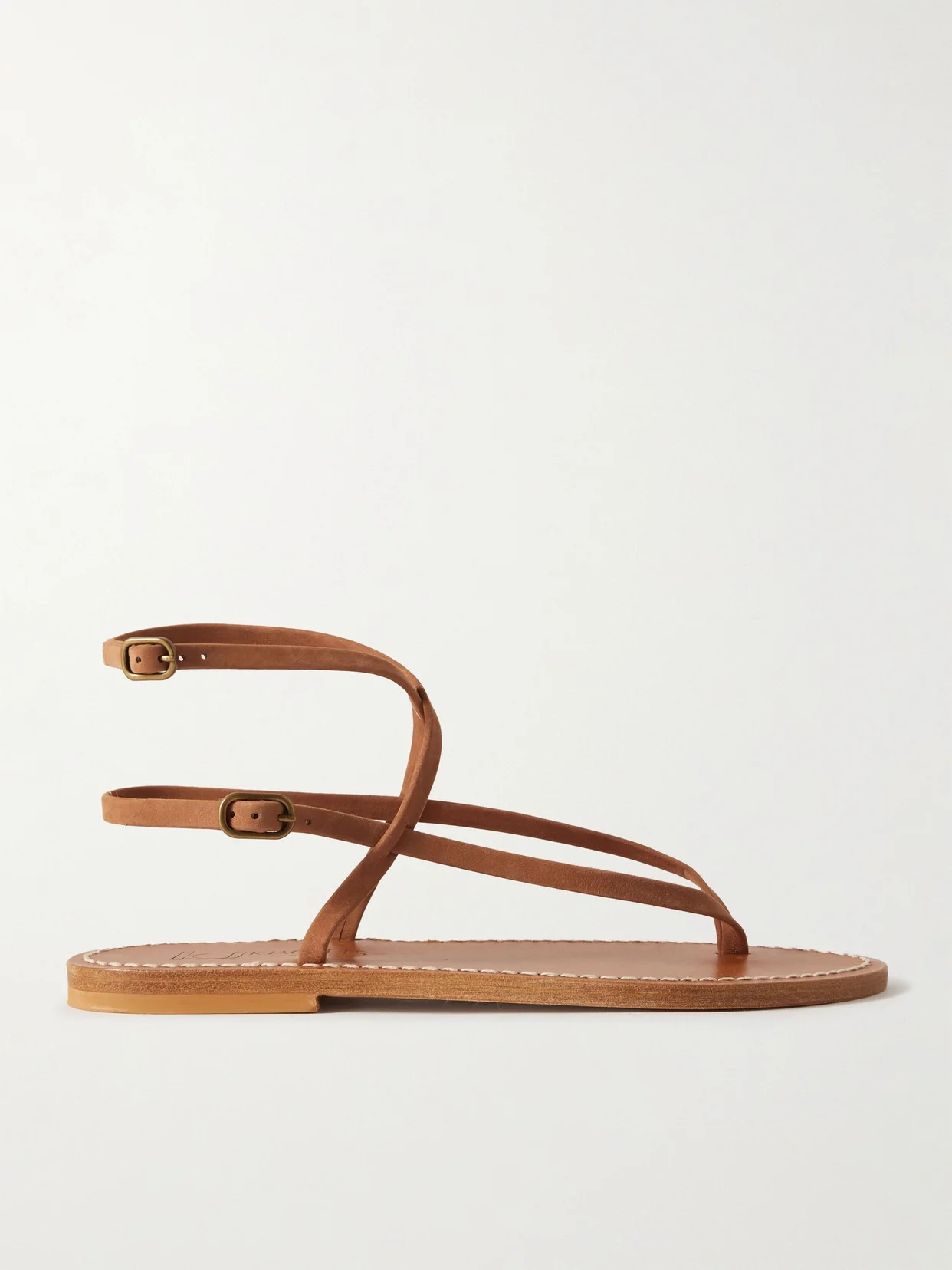 K Jacques St Tropez is named after the coastal town on the French Riviera, where its footwear is made using the same design process that's been in place since 1933. These light-brown 'Abako' sandals have slim leather straps that frame the foot and can be adjusted by two buckles for your perfect fit.
