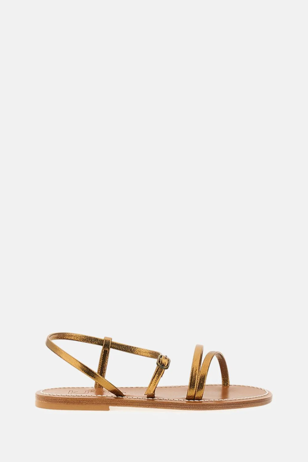 Low leather sandals thin straps that wrap around the foot Adjustable slim ankle strap Rubber-covered heel Color: brown/gold Details and Care Color: Oro Composition: 100% LEATHER Made in: Francia Sku: 0J31709METYLBRONZE