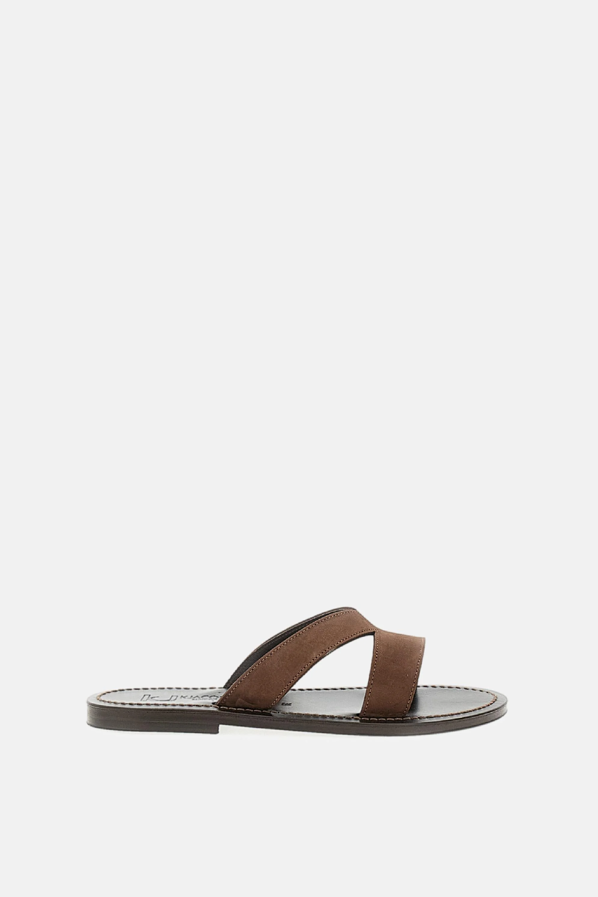 Low leather slipper Wide upper strap with topstitching Rubber-covered heel Color: brown Details and Care Color: Marrone Composition: 100% LEATHER Made in: Francia Sku: 0CL0023NBKEBONY