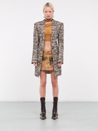 KNWLS beige & black coat, textured jacquard construction, notched lapel, structured shoulders, long sleeves, surgeon's cuffs, front double-button closure, back vent, straight hem, lined, tailored fit. Made in UK Outer: 50% Cotton 25% Polyester 18% Polyamide 7% Acrylic Inner: 52% Viscose 48% Cotton UK Sizing Model is 5'9" wearing size 8. Bust: 32" Waist: 24" Hips: 34"