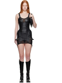 Handcrafted grained lambskin and stretch nylon mesh minidress. · Semi-sheer mesh · Paneled construction · Sweetheart neck · Adjustable elasticized shoulder straps and garter straps · Padding and pin-buckle straps at side seams · Concealed zip closure at back · Unlined · Antiqued gold-tone hardware Supplier color:Black Body 1: 100% lambskin. Body 2: 84% nylon, 16% elastane. Fill: 100% polyurethane. Made in Italy 251148F052005