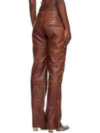 Grained lambskin trousers. · Four-pocket styling · Exposed zip fly · Zip vent at cuffs · Press-stud tab at waistband outseams · Full satin lining Supplier color: Rust Body: 100% lambskin. Lining: 100% acetate. Made in Turkey 252148F084001
