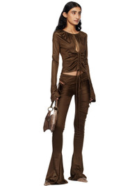 Stretch acetate-blend jersey blouse. Gathering throughout. · Bungee-style drawstring at round neck · Cutout at chest · Bungee-style drawstring at elasticized central seam · Flared cuffs Supplier color: Brown burn 70% acetate, 30% polyamide. Made in United Kingdom 251148F107001