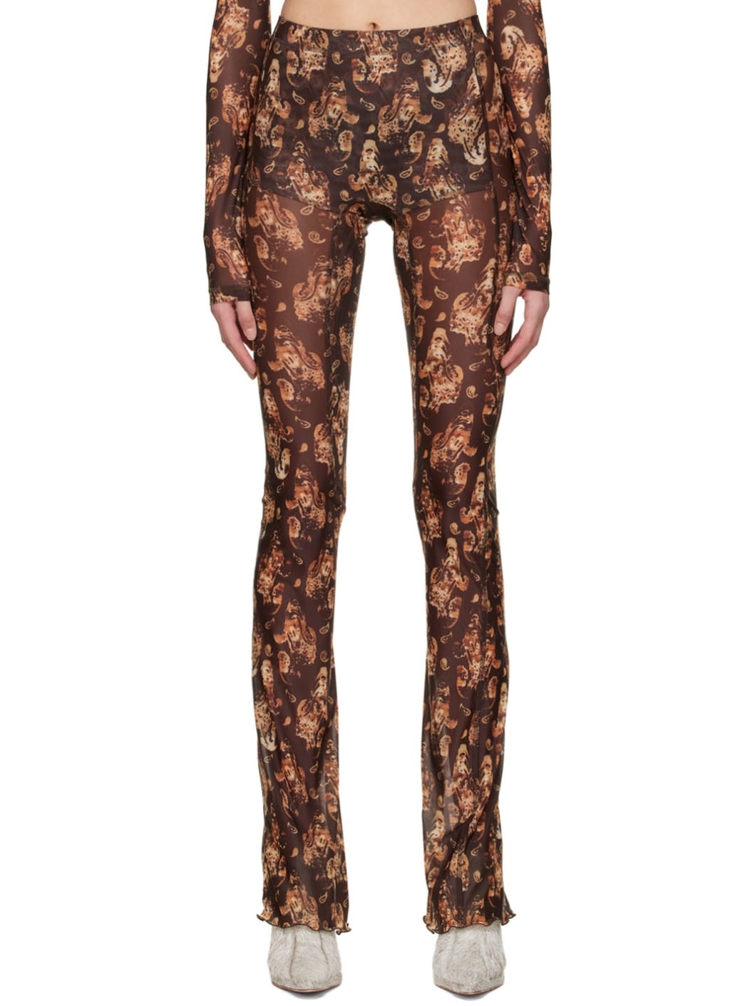 Semi-sheer stretch polyester jersey trousers. Graphic pattern printed throughout. · High-rise · Elasticized waistband · Lettuce edge at cuffs · Overlock stitching throughout · Partial semi-sheer lining Supplier color: Paisley dark