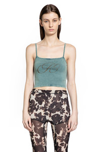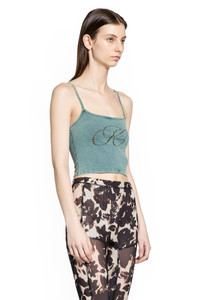 DESCRIPTION - Teal - Stretch cotton jersey - Garment dyed - Square neck - Front studded monogram - Sleeveless - Cropped hem - Fitted DETAILS - Made in: Hong Kong - Composition: 92% Cotton 8% Elastane - Model code: AW25CALCA0TE - Item ID: 9891589325142