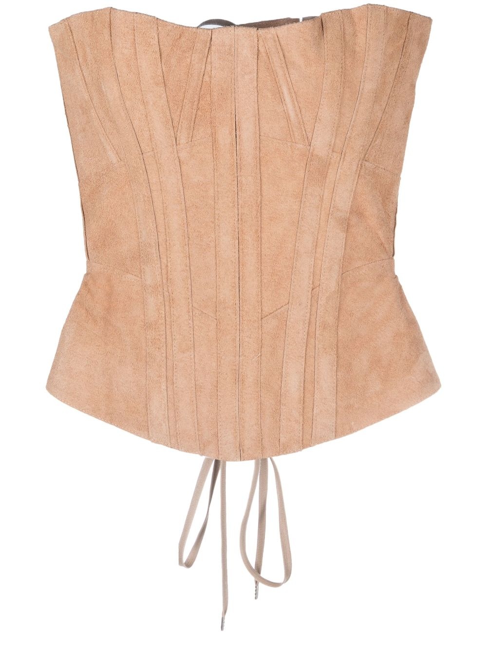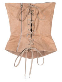 Daith lace-up corset Encompassing an empowering and disruptive vision, KNWLS presents the Daith corset top. It's fitted with boning for structure and offers two fastening options: a criss-cross lacing system or a silver-tone zip. Highlights - Light pink - Calf leather - Boned bodice - Square neck - Rear zip fastening - Rear lace-up fastening - Strapless - Curved hem Composition Outer: Calf Leather 100% Lining: Cupro 100%