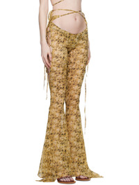 Semi-sheer stretch silk chiffon trousers. Floral pattern printed throughout. · Low-rise · Wraparound self-tie straps at waistband · Flared cuffs · Cutout with lace-up detailing at outseams · Concealed zip closure at back Supplier color: Wallpaper floral 92% silk, 8% elastane. Made in United Kingdom 231148F087014