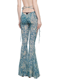 Flared semi-sheer stretch silk chiffon trousers. Graphic pattern printed throughout. · Low-rise · Criss-crossing wrap-around self-tie straps at waistband · Asymmetric cuffs · Cutout with lace-up detailing at outseams · Concealed zip closure at back Supplier color: Spikewall 92% silk, 8% elastane. Made in United Kingdom 231148F087012