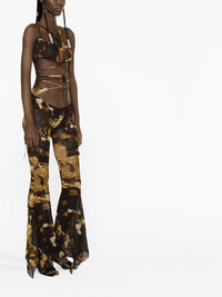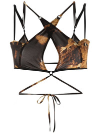 Glimmer tie-detail crop top In keeping with KNWLSâ bold aesthetic, this crop top is adorned with cut-out detailing and self-tie straps. Itâs saturated with a seasonal âStarlightâ print infused with glittered threads. Highlights - Black/brown - Stretch-design - Metallic finish - Cut-out detailing - Halterneck - Self-tie fastening - Adjustable spaghetti straps - Cropped Made in United Kingdom Composition Elastane 8% SIZE & FIT Model measurements Height 5 ft 10 in(1.79 m) Bust/Chest 31.1 in(79 cm) Hips 35 in(89 cm) Waist 24 in(61 cm) FittingInformation Designed for a close fit throughout The adjustable shoulder straps allow for a preferred fit when worn Made from a lightweight stretch fabric, this piece offers elasticity and flexibility when worn This piece fits true to size – take your usual size