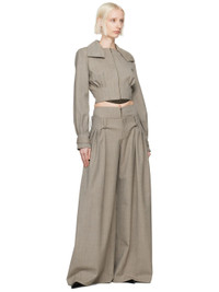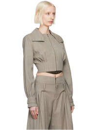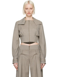 Wool sharkskin jacket. · Funnel neck converts to spread collar · Button fastenings at collar · Two-way zip closure · Pleats at cropped hem · Padded shoulders · Loop and detachable button tab at cuffs · Full viscose-blend twill lining Supplier color: Grey Body: 100% wool. Lining: 52% viscose, 48% cotton. Made in United Kingdom 242148F063000