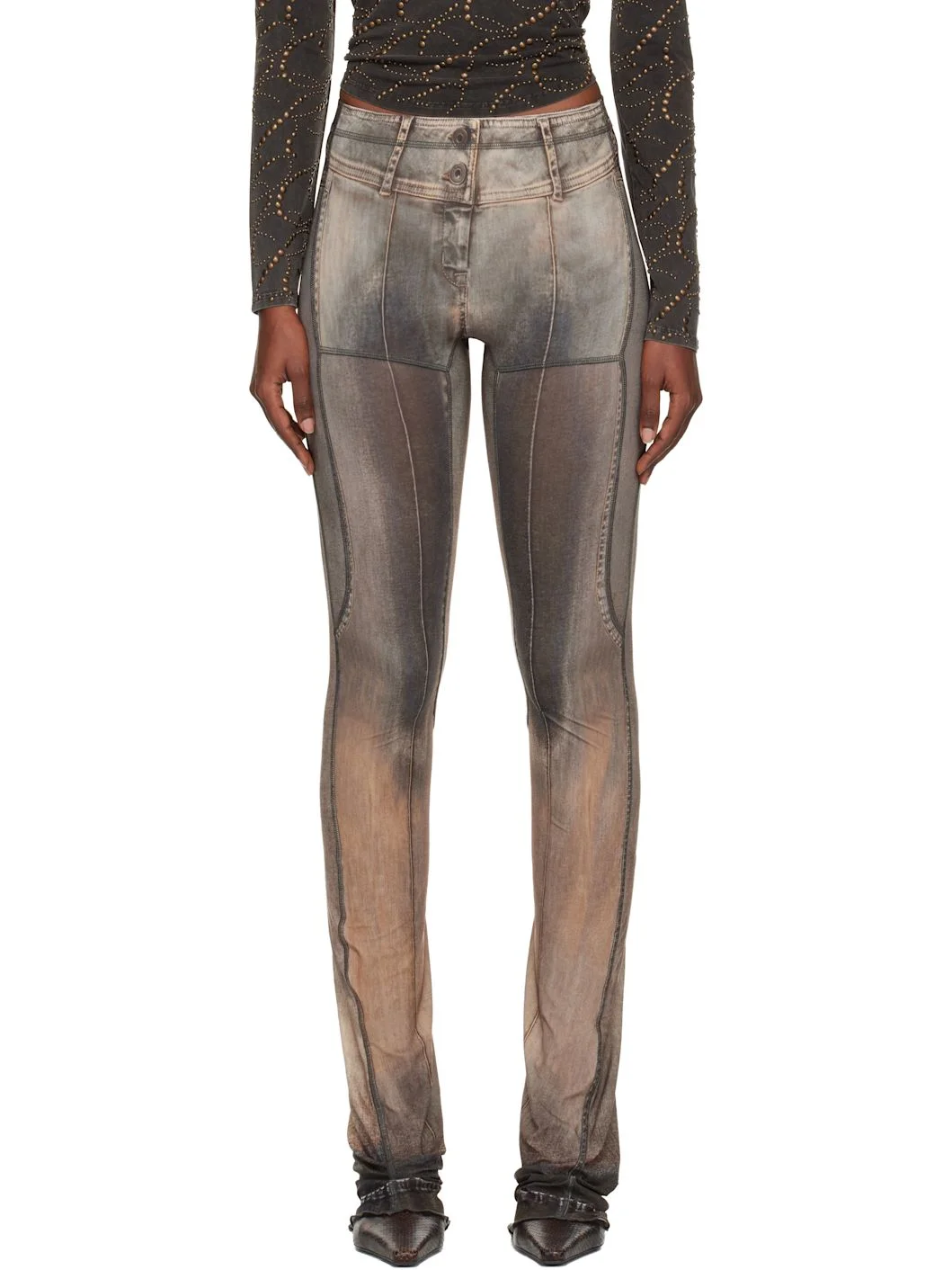 Stretch jersey leggings. · Trompe l'oeil denim graphic printed throughout · Elasticized waistband Supplier color: Harley 83% polyester, 17% elastane. Made in Portugal 252148F085001
