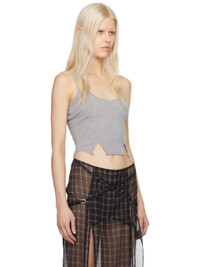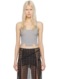 Rib knit cotton tank top. Pointelle knit detailing throughout. · Scoop neck · Twin vents at front cropped hem Supplier color: Grey 100% cotton. Made in United Kingdom 241148F111000