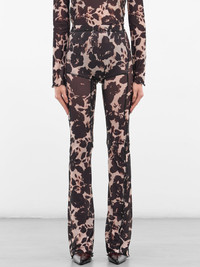 The Halcyon leggings in 'Rose' print are crafted from semi-sheer mesh with abstract rose silhouette graphics. The high-waisted shape finishes with lettuce hems. Featuring: • Slim fit • Mesh construction • Abstract rose silhouette graphic print • Semi-sheer fabric • High-waisted elasticated waistband • Lettuce hem • Subtle flared leg • Made in Portugal • 83% Polyester 17% Elastane • Standard sizing Model is 5'8" wearing size S. Bust: 28.5" Waist: 22.5" Hips: 33.5"