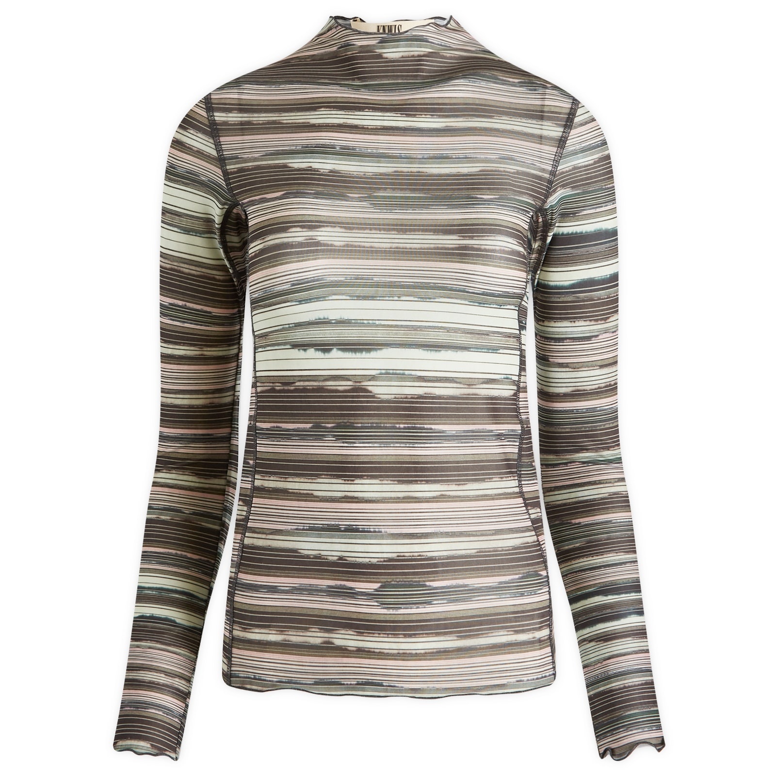 South London-based KNWLS are redefining the modern feminine wardrobe, one piece at a time. The Halcyon Top is perfectly figure-hugging, shaped with a panelled mesh construction and delicate ruffled hems. Finished with a custom bleached stripe print, it’s a piece that isn’t afraid to stand out – just like the person wearing it. - 83% Polyester, 17% Elastane - Ruffled Hems - Long Sleeves