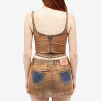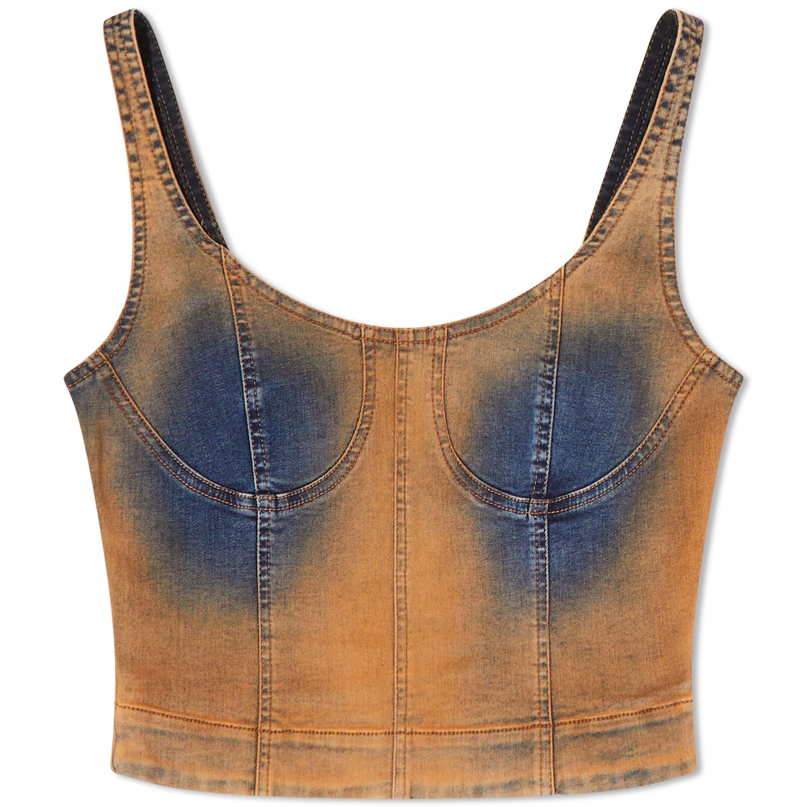One for the rule breakers, Harley Top is a testament to KNWLS’ rebellious spirit. Born from a desire to redefine fashion norms, the London-based brand continues to disrupt the conventional in the Noise collection, with this corset style top combining avant-garde design with stretchy form fitting denim fabric. Pair with the matching itty bitty mini to embrace your daring side and noughties nostalgia. - 88% Cotton, 7% Recycled Polyester, 5% Elastane - Back Zip Closure - Made in Italy - Dry Clean Only