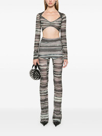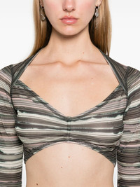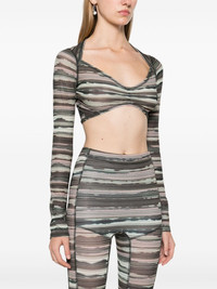 Infinity top Highlights - Sage green/multicolour - Stretch-jersey - Horizontal stripe pattern - Bleached effect - U-neck - Long sleeves - Ruched detailing - Cropped - Straight hem Imported Composition Polyester 83%, Elastane 17% SIZE & FIT Model measurements Height 5 ft 9 in(1.75 m) Bust/Chest 31.88 in(81 cm) Hips 34.64 in(88 cm) Waist 24.01 in(61 cm) FittingInformation Designed for a close fit throughout Made from a midweight stretch fabric, this piece offers elasticity and flexibility when worn